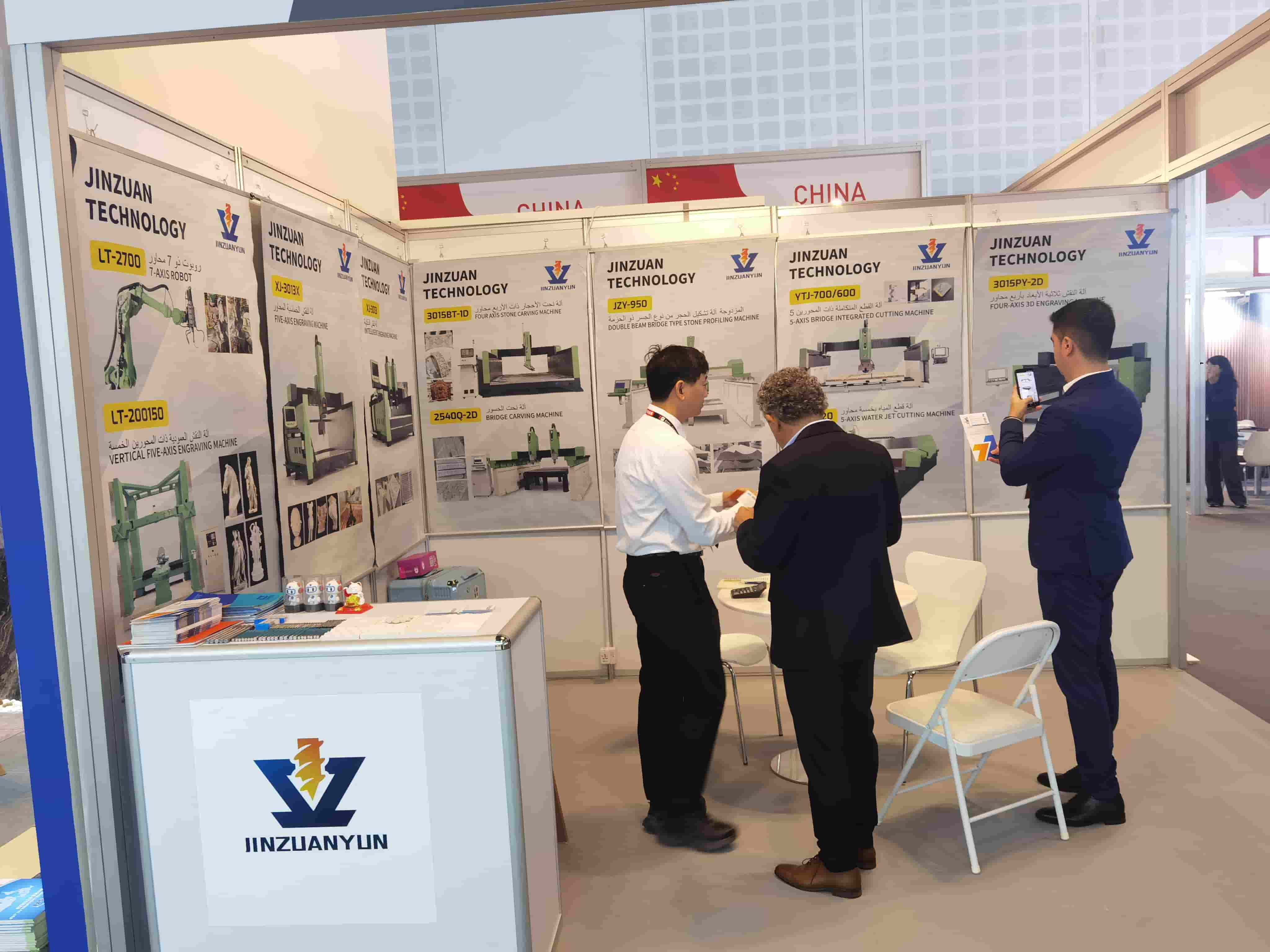 Quanzhou Jinzuan Technology Co., Ltd., proveedor líder de maquinaria para el procesamiento de piedra, participó con éxito en la prestigiosa Exposición de Dubái, celebrada del 24 al 27 de noviembre. El gerente de la empresa dirigió al equipo para exhibir su línea principal de productos en el evento, atrayendo la atención de visitantes globales y colegas de la industria.