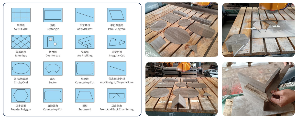 3. Fresado interno y de orificios de alta eficiencia: Producción en masa de encimeras de tocador comerciales que requieren cortes precisos para fregaderos y orificios para grifos.