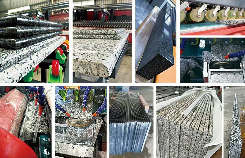 1) Fabricación de encimeras de piedra residenciales: Pulido y perfilado de cantos de encimeras de cocina de granito/cuarzo, encimeras de baño de mármol y mesas de centro de piedra. Compatible con perfiles de cantos populares, como redondeados y conopiales, para combinar con estilos de decoración del hogar.